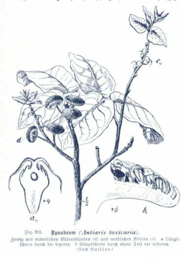 През 1783 г. в сп. Лондон се появява бележка за дърво убиец, което уж расте в Индонезия. Това е дърво, – беше казано в статията – толкова отровна, че унищожава всички живи същества петнадесет мили (почти 25 километра) около него. Цяла земя около това дърво е изпъстрено със скелети на нещастни хора и животни, случайно се скита на “неговата” територия.