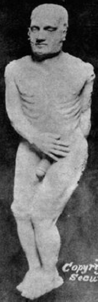 Гигантът от Кардиф е един от най-известните мошеници. това историята започва с факта, че в средата на 19 век убеден атеист на име Джордж Хъл се спори с методистския свещеник за линиите от Битие, което се отнася до гигантите, които някога са обитавали Земята. Не постигнал много успех в спора, Хъл реши да играе трик свещеник и наел каменодел, който издълбал камък за него скулптура висока повече от три метра. Готовата статуя е погребана двора на братовчед му.