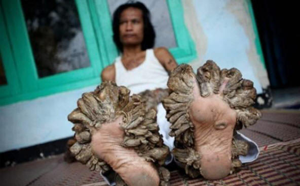 Индонезиецът Деде Косвара беше абсолютно роден здрав човек. Въпреки това, на 10-годишна възраст, момчето попаднало гора и боли коленете си. Явно попаднах на драскотини странна инфекция, след която около раната започна да се образува брадавици.
