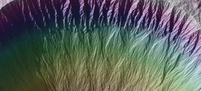 Изследователите откриха на снимките характеристиката на кратера на източника релеф за яри, по които ясно течаха потоци от вода или мокро почва, съдържаща повече от шестдесет процента от водната маса. Възможно е влагата, донесена тук от облаци от полюсите, и те изпадна в тези средни ширини под формата на обикновен дъжд.