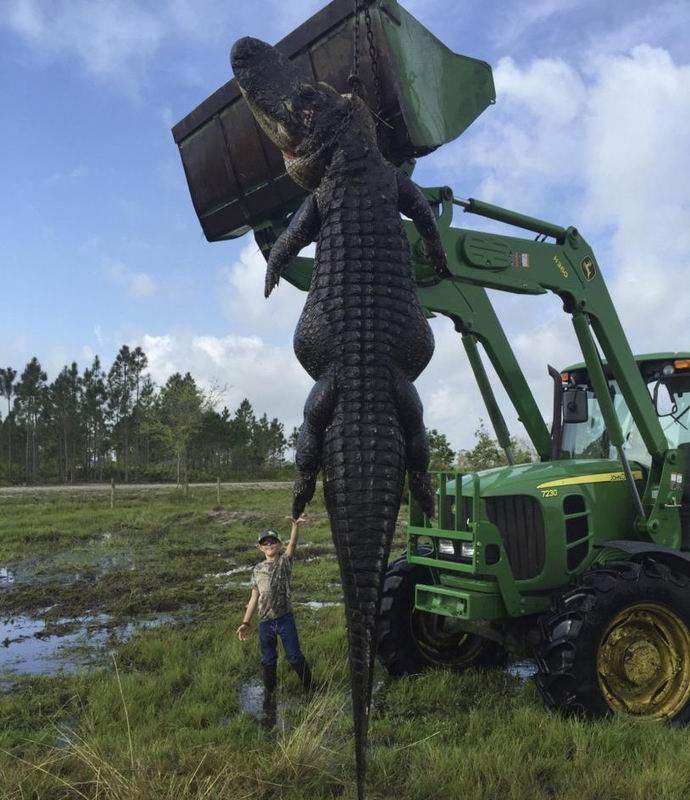 И така Лий Лайтси от Флорида, опитен ловец, застреля оня ден огромен крокодил, който яде животните си, и не пилета или зайци, а възрастни крави!