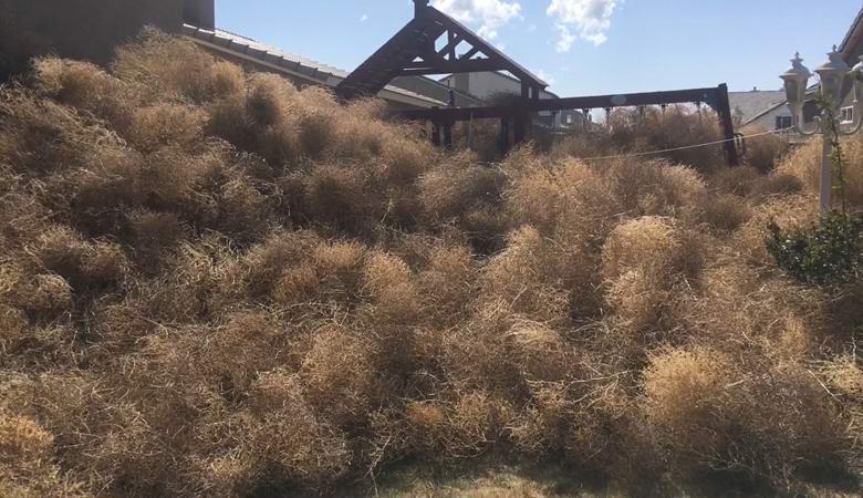 Американският град Викторвил в югозападната част на пустинята Мохаве Калифорния) „нападнаха“ безброй топчета, завъртящи се съществуването на местните жители е истински кошмар. местното население от 115 хиляди се оплаква от журналисти и служители, които изсушаваха растения, търкалящи се на вятъра и разпръсквайки семената си наоколо, те “заравят” цели къщи под себе си и парцели, коли и зелени площи.
