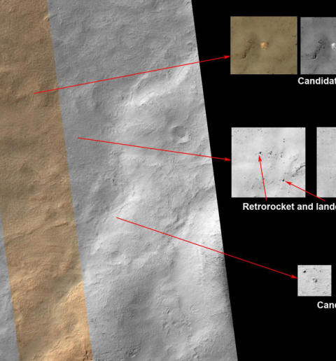 снимка от открити източници Експертите са забелязани върху изображение на НАСА парашут от Марс-3, превозно средство за спускане и термична защита (отдолу) Снимка: НАСА
