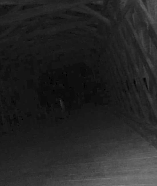 Това е покрит мост, през който можете да шофирате колата. От другата страна са пътеката, селският път, гората и царевично поле. Моята приятелка и аз бяхме напълно сами късно през нощта Прекосихме моста, после се върнахме и веднага забеляза този светъл силует в тъмното. Живи хора освен нас Не можеше да го има, тъй като проверихме всичко внимателно. О и изплашихме се, когато забелязахме този силует – истински призрак! В интернет видяхме много снимки на всякакви аномалии, които хората снимат тук, но дори не подозираха, че самите те ще се сблъскаме с такъв дявол и ще го премахнем.