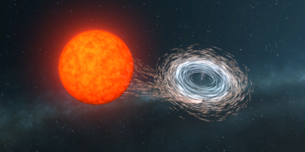Бяло джудже, което се върти, докато абсорбира материята от спътника си. (Център за върхови постижения на ARC за откриване на гравитационна вълна)