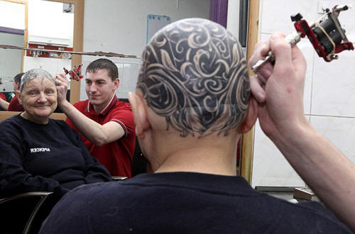 60-годишната Ан MACDONALD смело отговори на повикването, изоставена от болестта си: поради проблеми с щитовидната жлеза жена започна да плеши рано и преди три години напълно загуби косата си към главата. Тя обаче не се отчаяла и намери оригинален начин да я реши проблем – мястото на падналата коса е нарисувало ново за себе си. в продължение на с помощ се обърна към най-близкия салон за татуировки, където е необичайното в началото дамите не вярваха на желанието, но после с удоволствие Изпълни поръчката. Ан Макдоналд водеше незабележим живот. типична американска възрастна домакиня: поддържаше уюта в дома, отиде на разходка и кърми с трима внуци. Редка скръб я изпревари преди три години: поради заболяване на щитовидната жлеза и увредено метаболитна жена напълно плешива. Дълго време тя трябваше носеше неудобна перука, която наскоро реши да промени нещо по-интересно и удобно е татуировка. – Натъжих се гърлото, носещо тези ужасни перуки и шапки, каза жена пред Daily Mail. – Но не исках да бъда плешив и реших, че е татуировка от какво имам нужда. Според жената тя е била вдъхновена да направи рисунка. снимка в Интернет, в която се появява плешиво момиче татуирана глава. Тя отпечата снимка и отиде при потърсете подходящ господар. Жената не успя веднага идея: в духа на салони за татуировки молбата й беше счетена за абсурдна и отказана помощ и само третата към баба беше взета насериозно. сега Главата на Ан Макдоналдс също е покрита с черно-бяла рисунка от флорални мотиви, което, разбира се, само по себе си е доста сладък. Направата на обширна татуировка отне 12 часа по време на което старателни художници рисуваха своята „картина“. Работата струваше на баба 720 долара, но според нея тя заслужава си Поради това, неочаквано за себе си, тя стана истинска знаменитост в интернет. Ан заяви, че татуировката промени живота си и сега тя е по-щастлива от всякога.
