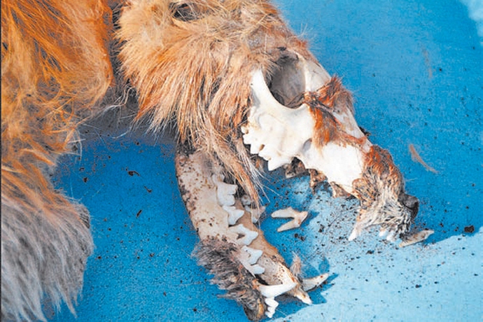 Снимки от отворен източници на Чупакабра, или по-скоро просто труп на странно животно в Дамир Мурсалимов, старейшината на село Новая, намери Башкирия разположен в района на Чишмински.