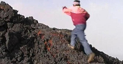 Видео на мъж, тичащ по гореща лава, избухна Интернет. Учените обясниха как смелчакът успя да направи това трик и силно препоръчвам да не се опитвате да го повтаряте. В40 секундно видео, публикувано в Youtube, показва колко неизвестно прави пет или шест стъпки по текущата лава. Когато го прави последна стъпка, под десния крак възниква пламък. че по-малко, човек безопасно достига до безопасно място, без да се крие докато се усмихва. Според геофизикът Ерик Клементи от университета в Охайо е възможен подобен трик. Както обясни ученият, кога в студения въздух се появява вряща лава, след това замръзва, образувайки се тъмна кора, върху която за кратък период от време може дори изправи се човек. И въпреки че лавата продължава да тече, тя е повече вискозен от водата, което означава, че може да издържи лек натиск. Пламъкът под подножието на героя на ролката, според Клемети възникна поради високата температура на лавата. Въпреки това, той забелязахме, че тъй като потока е бавен, това означава, че тя вече се беше охладила. „Съдейки по факта, че хората стояха наблизо, течението лавата едва ли беше много голяма “, добави той.