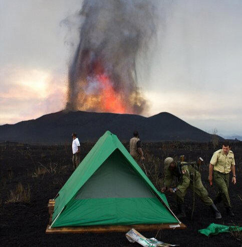 Ученият обаче предупреди, че смелият човек може да влезе в лавата, т.е. ако е замръзнала неравномерно на различни места. Ако е така случи се, тялото му щеше да се превърне в пара – водата в тялото достига точки на кипене и човекът ще “избухне отвътре навън”, обясни той. “Можете да преминете през потока лава без никакви последствия, ако сте избрали правилния поток от лава – охладен и бавен, ако тичайте бързо и ако имате късмет “, заключи ученият. И в Конго туристите избраха вулкана и дори поставиха палатки близо до мястото изригване: