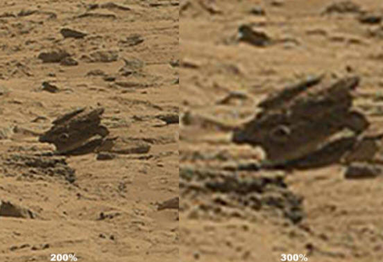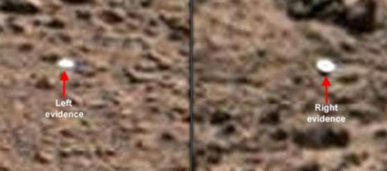 Друго откритие направиха ангажирани виртуални археолози търси създадени от човека обекти, заснети в снимки от други планети. Той бе разкрит от известен марсиански изследовател аномалии Джозеф П. Шкипер. “Археолозите” разгледа интерактивната на официалния уебсайт на НАСА панорама на марсиански кратер Гале, чиито пространства са от 6 Август 2012 г. роботът “Curiosity” ора (Mars Science Лабораторно любопитство). и откриха два странни предмета, драматично различен от пейзажа, който ги заобикаля. Те са ярки бяло. Те просто искрят на фона на марсианската почва. шкипер нарича дискове с обекти, но по-скоро те приличат на малки дълбоки чаши без дръжки – купи. Или бели порцеланови чинийки. „Купичките“ не се виждат веднага. Те се появяват в панорамата на процесът на увеличаване на изображението – сайтът има такава опция. Ивсеки може сам да намери бели артефакти. Места, където са лъжа, Шкипер маркиран със стрелки. Елементите са разположени и на двете. страна на снимката, направена през ноември 2012 г. – малко след това Кацане “Любопитство”. Местоположението на левия артефакт на панорамна снимка