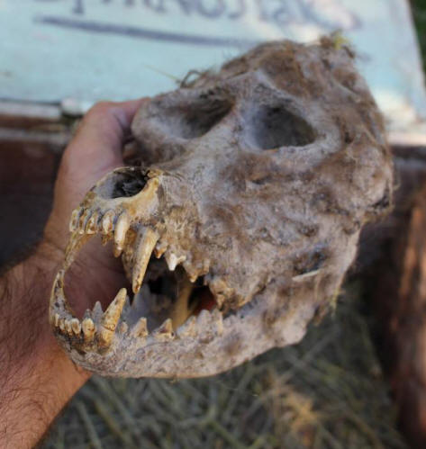 След това историкът Филип Ганев се срещна с фермера. точно по тези места събираше материал за новата си книга за Балкански войни. Според описанията на Ганев черепът наподобява вълк, но черепът е много по-голям – те се срещат само в примати.