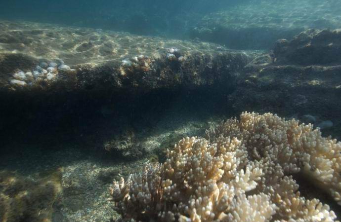 Американецът съобщава, че е летял с другарите си в хеликоптер и, в гледайки водата за определен момент, той внезапно забеляза неразбираема структура, гледаща от океана. То се намираше в далеч от сушата и беше напълно различен от коралите следователно рифът веднага привлече вниманието на водолаз. Независимо от това, според Сътън, когато влязоха в лодката, руините на стената започнаха този ъгъл е почти невидим поради вълните. Най-вероятно от тази причина, подводни руини и остана през цялото това време не забелязан от местните рибари. Също така по време на приливите и отливите древната сграда може би е била скрита от елементите, представляващи за кораби и лодки несъмнена опасност.