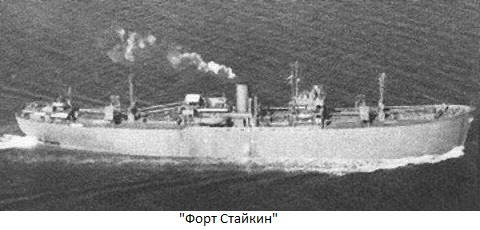 Форт Стайкин беше дете от военно време. Корабът е построен в Канада и сред 26 от същия тип кораби, прехвърлени във Най- еликобритания. На него трябваше да стане една от стотиците нишки, свързващи метрополията с войници, воюващи в Азия. Съюзно командване настъплението и обемът на доставките се увеличаваше с всеки изминал ден. Най- трюмовете на „Форт Стайкин“ освен оръжия, горива и смазочни материали имаше и продукти заредени бомби, снаряди, експлозиви в количество от около 1400 тона и повече от 300 тона TNT. Освен всичко останало имаше и метална кутия със златни пръчки (124 бр.), тежащи 12,7 кг всяка. Крайна точка плаването беше индийското пристанище Бомбай. Плуването обеща да бъде опасно. За много кораби това беше еднопосочен полет. Най- допълнение към конвенционалните морски опасности, пазени от немски подводници, самолети и Похитителите. На 24 февруари корабът напусна Англия и се отправи на юг, разчитай на Бог, късмет, две 12-килограмови пушки и монтирани палуба на Oerlikons. 30 март, „Форт Щикин“, безопасно преминаващ Африка, пристигна в Карачи. Тук корабът се отърва от част от товара – самолети, военна техника. Във вакантните трюмове започна кораб 8737 бали памук. Капитан Найсмит, като чу за това, не го направи повярва на ушите си и веднага отиде при пристанищните власти разберете кой излезе с толкова глупава идея. кратко Помогнете памукът е изключително запалим, лесен светва от най-малката искра, е в състояние да гори без достъп кислород. Скорост на горене 0,15m / s. Влажният памук е способен спонтанно изгаряне. Дори само превоз на памук по море, къде влажността е естествена, опасна, а заедно с експлозивите – чиста самоубийство. В пристанището твърденията на капитана не бяха приети, почивайки на военно време. Капитанът се подчини, на 9 април корабът напусна пристанището и три дни по-късно пристигна в Бомбай. Найсмит беше първият на брега и веднага отишъл до пристанищната власт, където представи документи за товар и поиска незабавно да започне разтоварване на памук. “Незабавно” работата започна едва на 14 април. Пожар!
