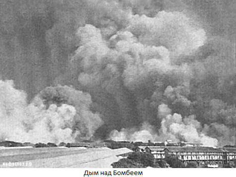 Частта от Бомбай, съседна на пристанището, се превърна в един гигант огън, който не беше възможно да се потуши. Вятърът потегли пламък до центъра на града. За да спасят Бомбай, властите създадоха мъртъв четвърт миля широка ивица, вътре в която целият град сградите бяха взривени. Едва след 4 дни властите заявиха това опасността отстъпи. Последният пожар е потушен след 2 седмица. Последствия