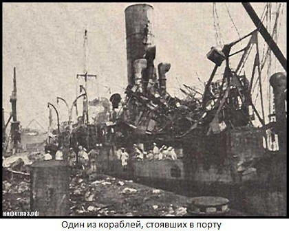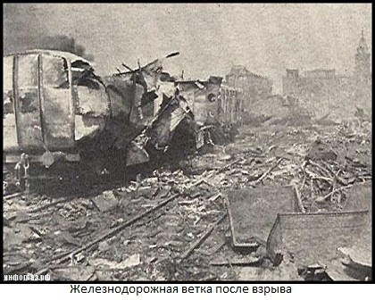 В 16:06 е имало експлозия. Получената приливна вълна се измести съда. Пожарните машини се смъкнаха от кея като хлебни трохи от масата. От петдесет пожарникари впоследствие намериха само овъглени каски. Станаха стотици горящи бали памук, разпръснати на стотици метри центрове на десетки пожари. Корабите, пристанищните съоръжения се запалиха складове. В 16:33 се чу втори взрив. Взрыв-2