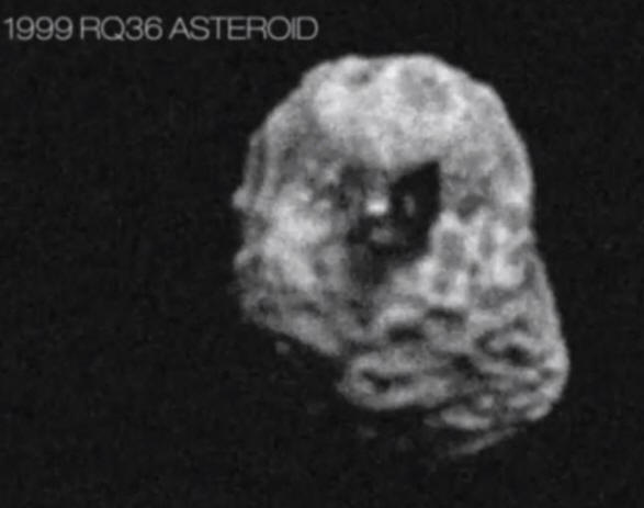Любопитни кадри се появиха в и нтернет. Върху тях е астероид 101955, известен още като 1999 RQ36. Астероидът се обръща. И става може да се види: от него стърчи черна пирамида. Ясно се вижда на сиво фон на самия астероид. В пирамидата има четири лица, горната част е плоска. На едно от лицата е светло правоъгълно петно. Като че ли люка.