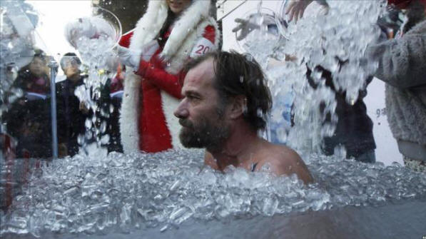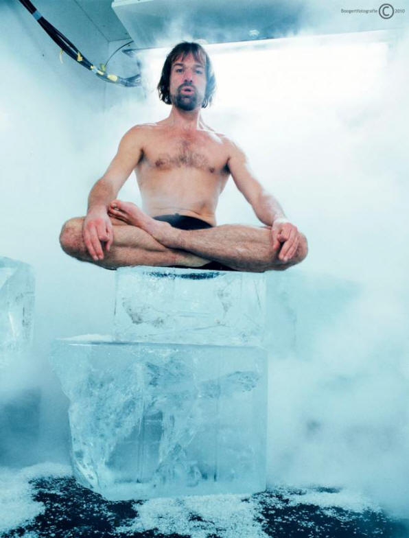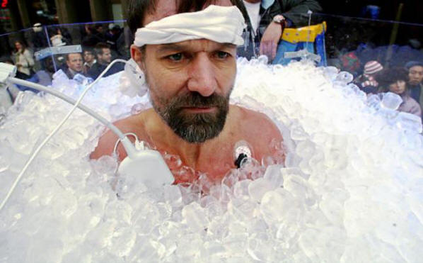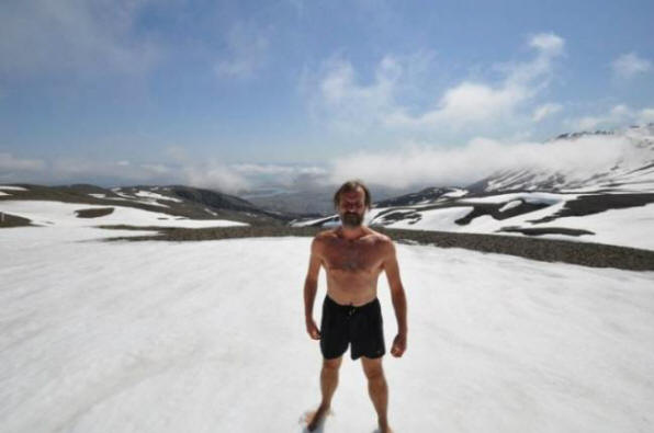 Уим Хоф се изкачи на връх Еверест, облечен в шорти. Температурата в горната част на Еверест варира от -19 ° до -36 °. учени прегледа тялото му и потвърди, че това не оказва влияние върху него ниски температури, които биха могли да убият човек на средна възраст способности.