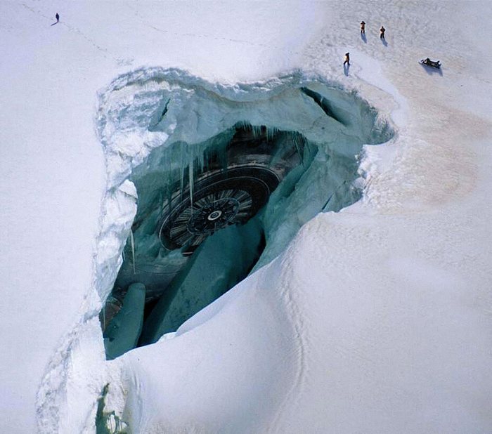 Следи от магнетолога доведоха до пукнатина, в която той не успя: в в дълбините на фигурата му върху естествен леден корниз потъмня. за Исак Хорвиц слезе с тялото на другар. Веднага след като слизането в ледената пукнатина продължи, ученият отбеляза това ставаше все по-студено. На дълбочина около сто и четиридесет метра той стигнаха до ледения корниз, върху който падна магнетологът, но телата там го нямаше – само някои следи от него. Кой или какво би могъл плъзнете трупа на човек в този студ (температурата тук беше около минус 70 градуса по Целзий). Да, и светлината проникна тук вече доста лошо …