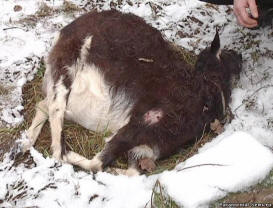 Изплашените собственици се обадили на ветеринарните лекари, но никой от тях исках да дойда. Единствено зоологът Олег Поясник се съгласи да помогне справят се със странната смърт на животно. Колан откри това през окото на козел мозъкът е засмукан, а през дупките на скапулата – част месо. Нещо повече, тя стана течна под влияние на неизвестното. ензим. Месото беше изсмукано благодарение на ензима, казва зоологът. е открита една дупка на гръбначния стълб. Също така козите са били засмукани външни гениталии, плацента и вода около децата. Според зоолог, нито едно животно не може да счупи шията и възрастната коза направете това на нея. В същото време местните казват, че козите и др животните изчезнаха и преди. Въпреки това, специално внимание на това не е платен, тъй като го приписвали на вълци.