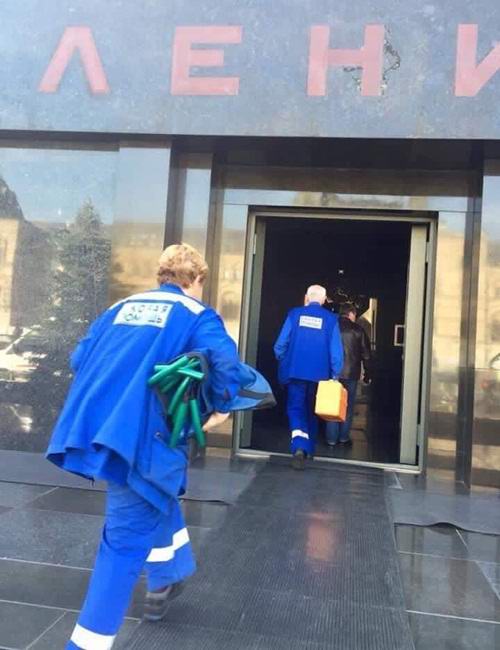 Снимката по-долу, в която влизат двама лекари оборудване до гробницата на легендарния комунистически лидер, бързо стана вирусен и мигновено се разпръсна по света мрежата.