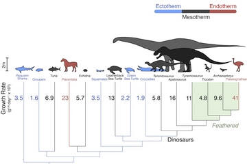 Динозаврите може да не са били хладнокръвни като съвременните влечуги и не топлокръвни като бозайници и птици. по време на 135 милиона години, те доминираха на планетата с кръв, която не беше студено и не горещо, като междинен тип, който в нашето време е изключително рядко. Модерни влечуги, като гущери, змии и костенурки, са студенокръвни, или ектотермични, тоест телесната им температура зависи от температурата околната среда. От друга страна са птиците и бозайниците топлокръвни, тоест те контролират температурата на тялото си, поддържайки я постоянна. При мъжа става въпрос за 37 градуса по Целзий (98,6 градуса по Фаренхайт). динозаври са влечуги и дълги години учените вярвали в това те бяха студенокръвни същества с бавен метаболизъм, зависи от температурата на местообитанието им. Някои обаче динозаврите, станали предци на съвременните птици, могат да летят това a priori трябва да означава, че те имат ускорен метаболизъм и постоянно висока телесна температура. За да разрешите тази загадка природа, изследователите са разработили нов метод за анализ метаболизъм при изчезнали животни. Стандартът беше взет за основа метод за определяне на колебанията на жизнената активност въз основа на изследването на годишните филийки. Подобно на дърветата, качеството и количеството години на живот, които могат да се определят по пръстените на изрязания багажник, животните имат подобни слоеве (пръстени) по костите. Най- случай с определяне на нивото на метаболитните промени, учените се опита да определи не само броя живели години, но и техните качество, както и други характеристики на животните, като комплект тегло, телесна температура и други подобни. За изследвания бяха взети проби от съвременни влечуги, бозайници и птици, както и тъкан изчезнали животни, включително няколко вида динозаври. Най- Резултатът от изследването разкри следния модел – наддаване на тегло, в противен случай – растеж на животното, в случай на топлокръвна фауна беше 10 пъти по-висока от растежа студенокръвни животни. Ситуацията с метаболизма е подобна: способността за усвояване на храна в топлокръвна е десет пъти по-висока. обаче същото проучване установи, че вкаменелостите на динозаврите растат по-бързо, от техните хладнокръвни съвременници – влечуги, но по-бавно от топлокръвни животни. Този модел доведе до заключението, че тип кръвообращение на динозаврите може да се характеризира като мезотермично – тоест средната стойност между ектотермалното (студено) и ендотермичното (Топло). Животните с този тип кръвообращение могат да генерират достатъчно топлина, за да поддържа по-високо от околните околната среда, телесната температура обаче не могат да го правят постоянно. Най- съвременна фауна такива акули могат да бъдат причислени към такива животни, риба тон, няколко вида кожени морски костенурки и яйцевидна ехидна. Например телесната температура на риба тон винаги е по-висока температура на водата обаче, когато рибата е потопена в по-студена дълбока вода, нейната телесна температура е пропорционална на температурата на водата също намалява. Мезотермите имат устройства за запазване топлина, но те не изгарят съхраняваните мазнини и не треперят, така че дръжте на топло. За разлика от нас, за да не замръзнат, те не вдигат скоростта на вашия метаболизъм. Роля в поддържането на топ