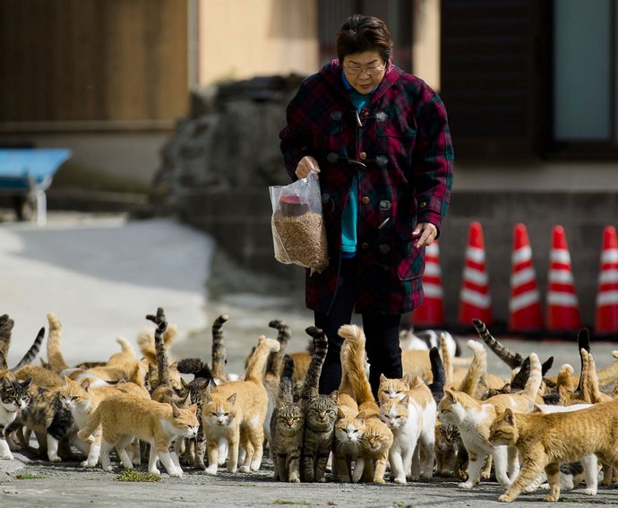 В Япония има уникален котешки остров – Таширо, който е по-често току-що наречен Cat Cat. Този зимен сезон поради лош метеорологичните котки останаха без храна, така че няколко възрастното население на острова се развълнува.