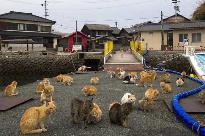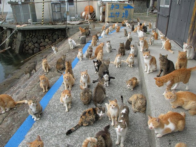 Старите хора всъщност изпаднаха в паника, защото котките са тук седем пъти повече от хората и когато гладни животни се разхождат с колела по петите и крещи – това е страшна гледка. Магазини на острова не, така че просто няма къде да вземем храна за котки. Обикновено всички тази орда от “опашки и опашки” се подхранва от туристите, идващи на Островът на котките е точно за тази цел – да погледнем това безумно кътче на света, “чат” с котки и дори зареждане тук енергия. Казват, че това е най-добрата терапия за всички заболявания. Естествено, те носят храна за животни, защото с котките Можете да общувате само като ги играете и храните.