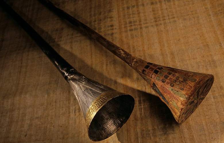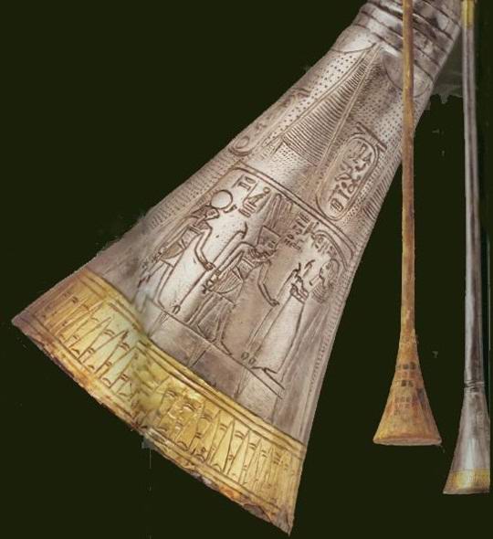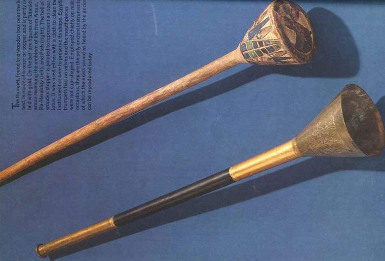 Британски археолог и колеги, открити в гробница известният фараон Тутанкамон две прави и дълги тръби, една от тях които бяха направени от дърво и сребро, другото от мед и бронз. Дължината на единия от тях е 57 сантиметра, дължината на другата – малко по-малко. Смята се, че това са най-древните инструменти. подобен тип, запазен до наши дни.