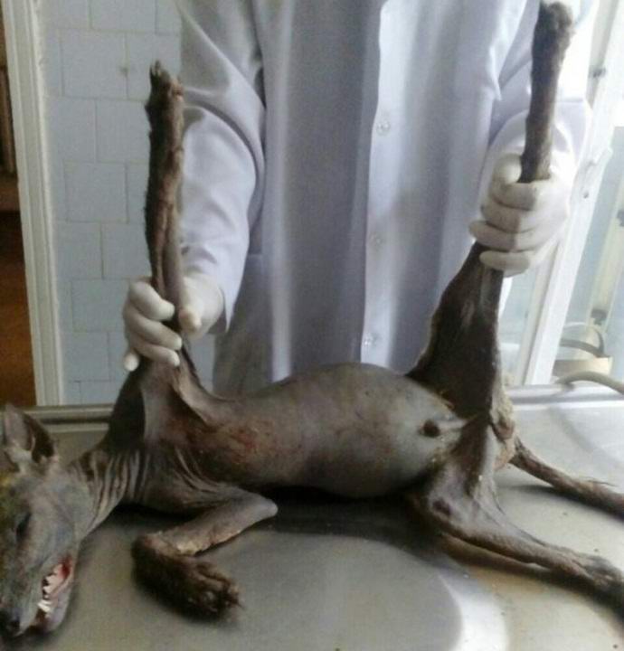 Селяните хвърлиха мъртво животно, много неприятно на външен вид боклук, но скоро той бе прибран от ветеринари, които решиха да учат мистериозно създание. Експертите отчитат това внимателно изследователите са труп, но не можаха да определят какъв вид е той се прилага. Чудовището има неестествено остри зъби, които не могат да бъдат да се срещне с едно куче, непропорционално дълга шия и големите уши са подобни на ушите на африканска лисица. Валери Допиряк, работещ във ветеринарната лаборатория в Черновци, каза това Лекарите са готови да прехвърлят трупа на учени за допълнителен анализ.