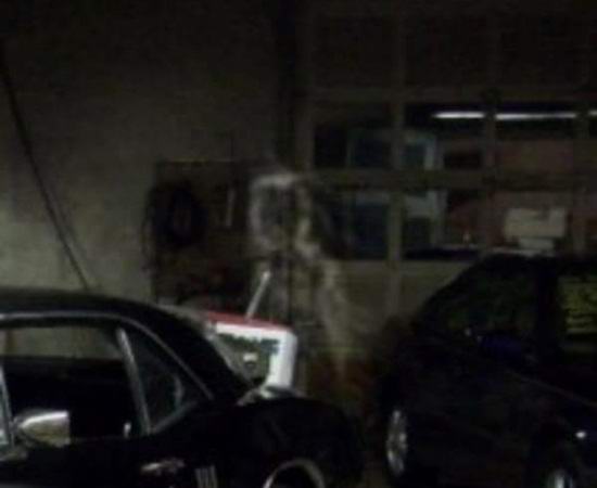 Тери и Джесика споделят, че в момента са сгодени реставрация на класически автомобил. Наскоро женена двойка реши направете снимка на колата в гаража и точно в този момент нататък изстрелът удари нещо много странно. полупрозрачен хуманоидна фигура, сякаш очертана от белезникав контур, материализиран точно в мрака на стаята. Автори на изображенията имайте предвид, че нито една кола не е била включена по време на стрелба двигател, така че не можем да говорим за изгорелите газове.