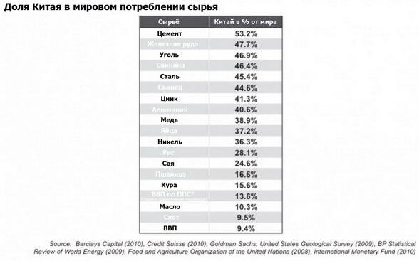 – Така че защо се случва всичко това сега, въпреки че населението е избухнала в света в продължение на два века? Отговорът се крие отчасти Впечатляващият растеж на Китай, Индия и други големи страни. Използването на ресурси от тези страни е потресаващо. Ето оценките в процент от глобалното потребление на различни ресурси, които консумиран само от Китай. (Китай е само на 9 процент от глобалния БВП. И консумира 53 процента от света цимент!).