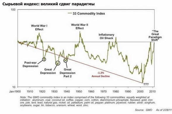 * Статистически, повечето стоки са вече досега от предишния си низходящ тренд, който прави доста вероятно е старата тенденция се е променила – което всъщност е е промяна в парадигмата – може би най-важната икономическа събитие след индустриалната революция.