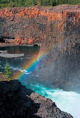 В скалата на платото Путорана ясно се вижда дебелината на базалтите, т.е. излял преди 251 милиона години в най-краткото време – хиляди години. Покритието на древна лава по тези места достига дебелина от 1,8 километра. Снимка: SERGEY FOMIN / RUSSIAN LOOK