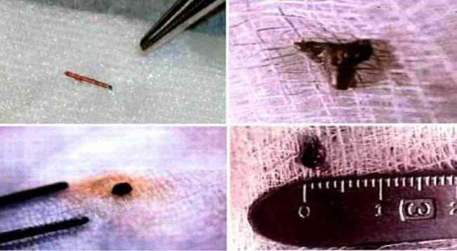 Беше като „матрица с правилни квадратни клетки, съдържащи включвания под формата на двоичен код. “Псевдонаучен обществото и след него вездесъщата преса кръщаваше тези обекти “импланти” (лат. “имплантиран в тялото”). следователно ние се съгласяваме да наричаме определени обекти небиологични произход, вграден в жива човешка тъкан от неизвестен по начин и с неизвестни цели. Въпреки това в началото на нашите малки статиите разглеждат случаи на просто проявление на метали в тялото на Homo Sapiens. Разбира се, метални фрагменти, появяващи се в човешки тела в резултат на наранявания на бойното поле, битови и промишлени наранявания, хирургични операции и др. тук те няма да се считат за тривиални, макар и в гореспоменатото В тези случаи се проявяват много интересни и загадъчни явления. Paul Брег, автор на аплодираното произведение “Пост” описва инцидент, който му се е случил. Не мога да гарантирам точността на цитата, но хода на събитията е описан абсолютно правилно. „Беше четиринадесетият ден годишен месечен период на гладуване Отплавах с лодка надолу хода на малка река. Изведнъж остър силна болка, придружена от конвулсии. С трудност излязох брега, а тук около половин чаша живак естествено излезе от мен. Бях изумен, но по-късно си припомних, че в детството си пълнен с лекарство “Каломел”, тъй като страдах от хроничен настинки и това лекарство се правеше на живак основа. “Но случаят е много скорошен и много по-загадъчен. 53-годишният електротехник от Николаевск на Амур Павел Попков се обърна към областна клиника за флегмон на лявото рамо. Какво е това когато се отвори, имаше изненада и известно объркване на хирурга възпалена зона, той откри отровно блестящ в раната живак. Флуороскопия, извършена по-късно, е установена при пациент, чийто биохимичните анализи бяха абсолютно нормални, наличието на огромно количеството живак в организма. Отровният метал „искри“ при електротехника навсякъде, освен черепа. Меркурий, открит в кръвообращението система и лимфни възли. Между другото, Попков се заинтересува милиция – Пол преди е работил в добив на злато предприятие и там, както знаете, се използва за рафиниране (възстановяване на злато) е именно живак. По-късно стана известно, че за няколко месеца преди описаните събития с живачен флегмон до осемнадесетгодишен мъж дойде при лекарите – така добивът на злато няма нищо общо, само лекарите във втория случай се оказа по-буден, любопитен и по-професионален. И тук напълно различен клас на откриваемост в живи човешки тъкани елементи предоставя много повече място за размисъл и вдъхва очевидна загриженост за техните изследователи. Както беше вече забелязани по-рано, от края на 80-те все повече и повече доклади за извличане на мускулна и костна тъкан от болки от неразбираем произход за лекарите на пациенти, странни елементи. Линейните им размери варираха от части от милиметри. до единици сантиметри. Елементите бяха поставени в най-неочакваното части на тялото – крака, коремна стена, носна преграда и т.н. нататък. Тревожен от нарастващите доклади на специалните служби САЩ (ФБР, НСА и най-вече ЦРУ) са тясно ангажирани зададен проблем. Американското разузнаване дори се появи щатен специалист – д-р Роджър Лир. Между другото, почти първата историята за премахването на доктор Лиър от метален имплант от краката на па