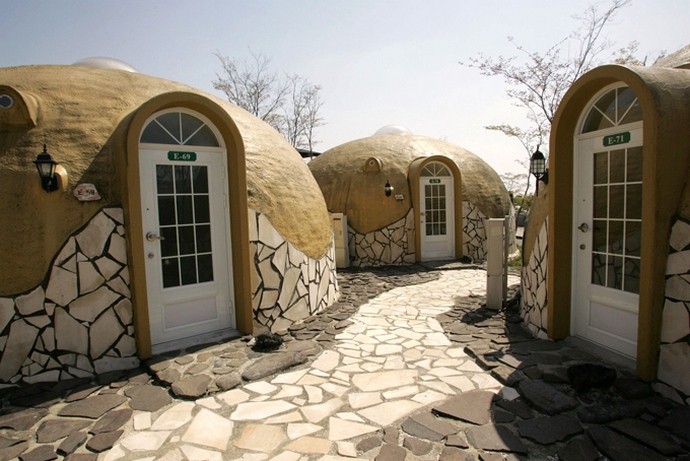 Например в Япония вече е реализиран изцяло кръгъл проект. у дома, за какво мечтаят, както се оказа, не само деца, но и творчески архитектите, които са построили невероятния хотел са напълно състоящ се от овални къщи. Тези сферични хотелски стаи повече приличат на играчки структури, но те са много удобни за настаняване и са с голямо търсене сред туристите.