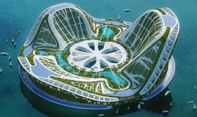 Белгийският архитект Винсент Калебо (Vincent Callebot) за да спаси човечеството в случай на глобален наводнение. Не, той не проектира ковчезите на Ной, той създава (засега само нататък компютър) кораби-градове, или по-скоро – плаващи островни градове, всеки от които ще бъде проектиран за петдесет и сто хиляди души. Винсент нарече своето дете, състоящо се от лагуна и от три венчелистчета, – водна лилия, тъй като всъщност е такъв остров подобно на едноименното плаващо водно цвете. В този дрейф град, който няма да се страхува от морски течения, бури и цунами, всичко е осигурено за пълноценен живот и при желание, островът винаги може да се приземи.