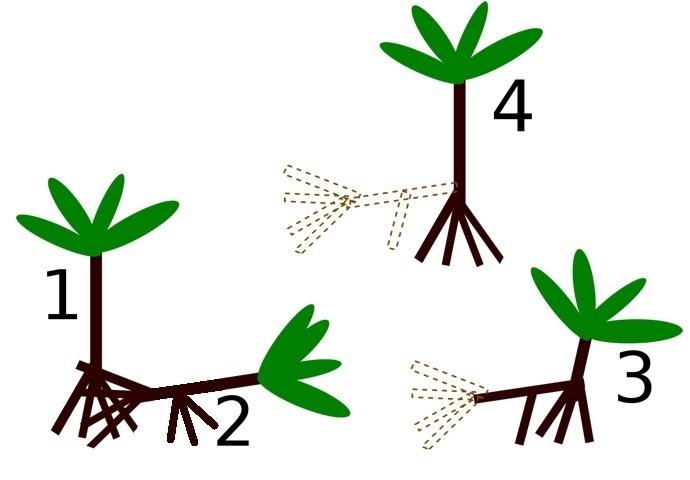 Според палеобиолог Петър Врсански, който работи в Братислава академия на науките, когато хранителни вещества в земята под палма е изтощена, дърво освобождава дълги корени от ствола, използван за намиране на близка плодородна почва. Младите корени намерете подходящо парче земя, проникнете вътре и започнете да дърпате стволът на дървото бавно се изтегля от старото място корените. Тогава палмата отново се издига, а старата коренова система и долната част на багажника умира, превръщайки се в тор. височина дървото намалява, обаче, веднага започва интензивно да расте.