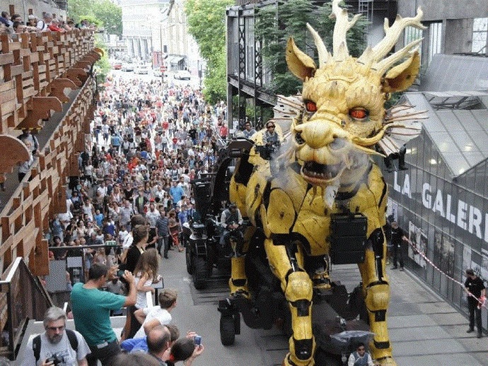 Обърнете внимание, че в рамките на този проект, друго гигантски чудовища например същото механично дванадесетметров слон, който може да носи широката си могъщият гръб веднага петдесет туристи да прегледат местните атракции. Вярно, слон в двойка с дракон по улиците Нанта не се появи този уикенд. Страхотни организатори на шоуто решиха да демонстрират само едно от фантастичните си механични животни. Бедата обаче е голяма – началото, особено след като зрелищната атракция, очевидно, беше успешна.