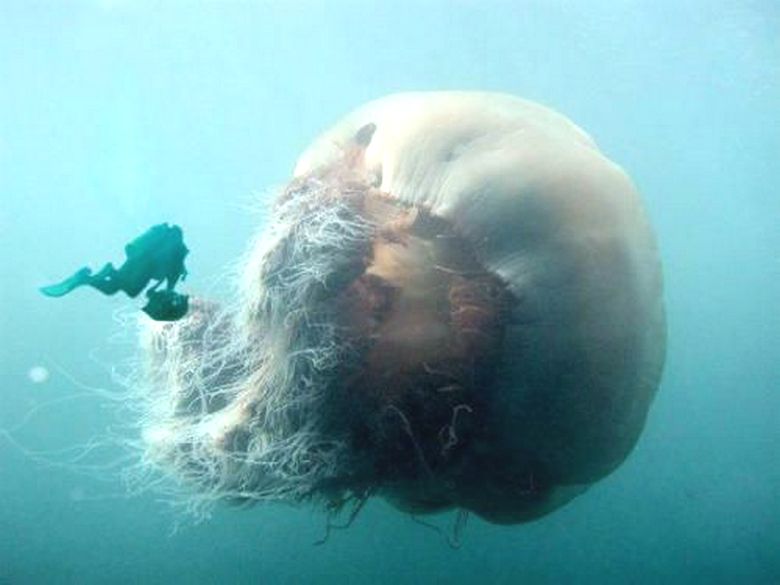 Що се отнася до последните новини по тази тема, буквално на дни край бреговете на Корнуол Великобритания гигантски медузи (вижте видеото по-долу). Вярно, операторът Дан Абът, който е снимал тези красавици, уверява, че варелите медузи това ежегодно плавайте до бреговете на мъгливия Албион, абсолютно не опасни за хората …