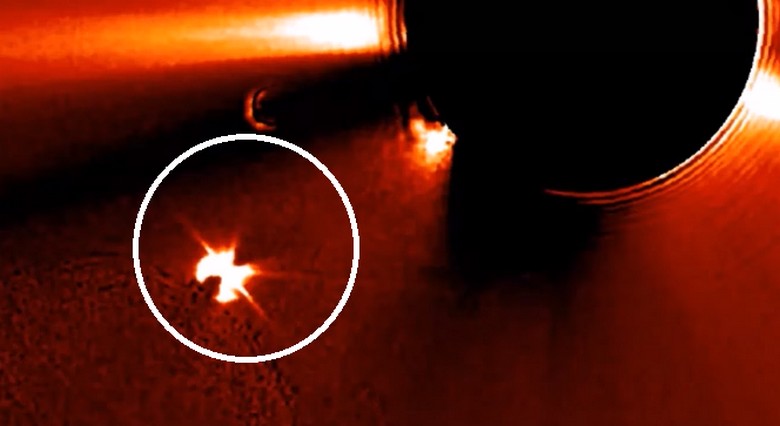 … и тогава на другия ден беше друг кораб с извънземен произход забелязани от космическите спътници SDO и SOHO, поне те предадени на Земята изображения, потвърждаващи това. Просто този път гигантски НЛО приблизително сто пъти по-голям от нашия планета, излетяла от Слънцето – директно от огнената си магма. Инищо …