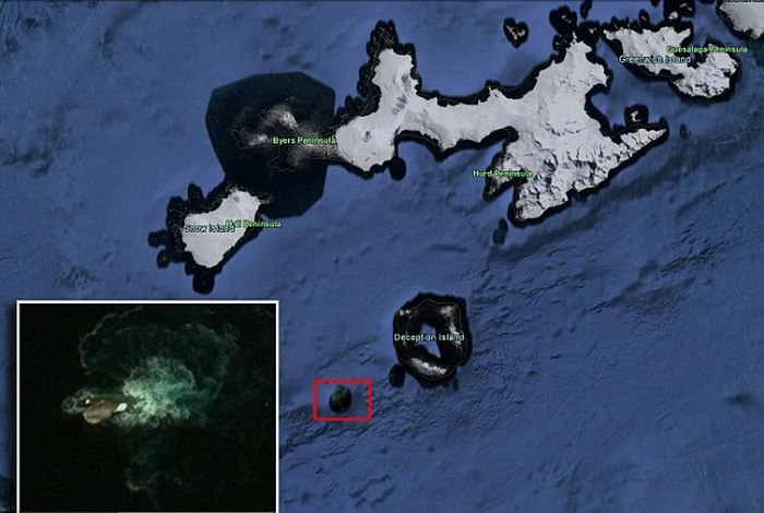 А онзи ден теоретиците на конспирацията откриха друго косвено потвърждение, че кракен съществува. Те откриха интересен кадър, направен с Google Earth в близост до остров Декупаж, който е част от Южния архипелаг Шетландски острови (координати – 63 ° 2´56,73 ″ Ю 60 ° 57 ′ 32,38 ″ З). ИНа тази снимка изследователите забелязват гигантски калмари.