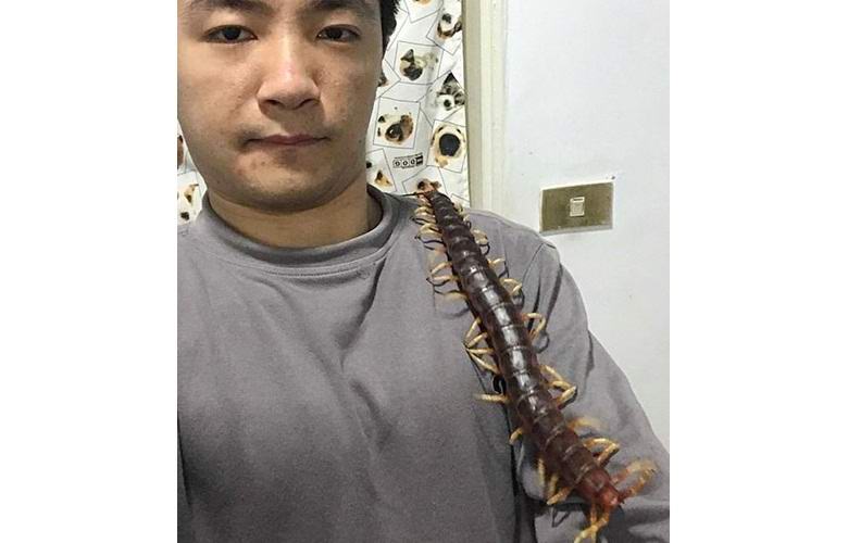 26-годишният Нийл Чен Ле търси дълго време в магазините за домашни любимци Перуанска сколопендра, способна да достигне дължина от 30 сантиметра. Мъжът обаче дори не подозирал, че милипедът, който е купил ще може да расте до 42 сантиметра! Като включим следното видеозапис, можете да видите как това чудовище е с размера на с котка пълзи по ръцете и тялото на стопанина си. призрачен спектакъл, който прилича на кадри от филм на ужасите.