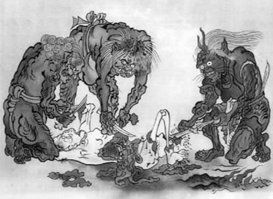 Особено много мрачни традиции обиколиха селска Япония. Например, това в префектура Вакаяма, близо до планините Шокумотори и Окумотори, има дълбока дупка в земята, където живеят зли хидаругами. Много планински пътеки в Япония има специални свети места, където можете да се молите за защита от гладните призраци.