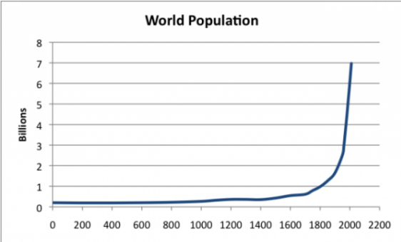 Рязкото увеличение на броя съвпада с периода на производство и използване на изкопаеми горива и започва в началото на 19 век. Ако обаче разгледаме още по-ранен период от време, тогава Вижте, че растежът се наблюдава през много дълъг период. Човек се научи да използва огън преди повече от милион години. Азапочвайки от 75 хиляди години пр. н. е. растежът на човешкото число е станал доста стабилен: