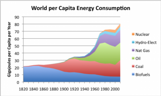 От 1800 г., благодарение на увеличението на производството на изкопаеми горива, имаше рязък скок в броя на хората и значително увеличение ниво на живота му.