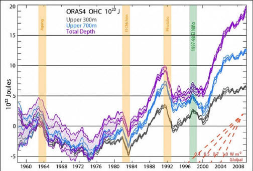 Обсъждайки глобалното затопляне, обществеността се интересува от преди обща средна температура на въздуха в близост до земната повърхност, но това само една от питите на климатичния Наполеон. Може би не го правите забелязали, но океаните са толкова огромни, че държи много повече топлинна енергия от атмосферата. 90% енергия добавен към климатичната система от хората се усвоява планетарна вода. За съжаление следете този процес трудно. На сушата температурата се измерва от много метеорологични станции и на открити пространства очевидно не са достатъчни. В началото на 2000-те започна разполагане на автономна флотилия от арго инструменти, която драстично увеличи количеството данни, но се случва в дълбока вода и до днес остава загадка.