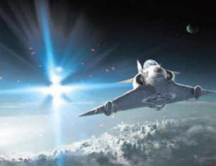 Космическият кораб се отклони и застана под и до него Френски самолет и Робърт можеше да види пилота в пилотската си кабина, който обърна глава и погледна към кораба. Свръхзвуков изтребител, проектиран от Dassault Aviation в средата на 50-те години. Робърт също можеше да види пилота и таблото му панел на екрана и изпишете регистрационния номер на реактива двигател: FB.
