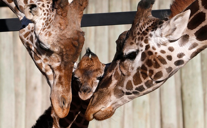 Женските жирафи са прекрасни майки, на които не им пука само за трудно спечелените, но и за малките на други хора, докато техните родителите търсят храна. Тези гиганти от животинския свят раждат стоящи и затова техните бебета трябва да паднат на земята от височина един метър и половина и кацайте на задните крака. Въпреки това, вече след часови жирафи стават и правят първите си стъпки. Какво е изненадващо: бебетата се раждат с рога …