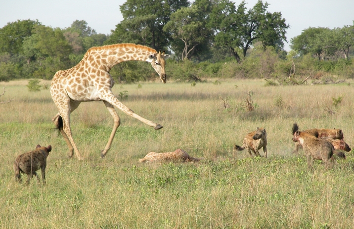 На пръв поглед жирафите изглеждат неудобно и тромаво, което ги прави лесна плячка, особено когато ядат и ядат до двадесет часа на ден. Всъщност жирафите почти няма врагове, освен ако лъвовете понякога решат да опитат късмета си и дори това рядко завършва с късмет за тях. Всички останали хищници страхувайте се от мощните удари на жирафа, които могат да бъдат приложени като краката и главата.