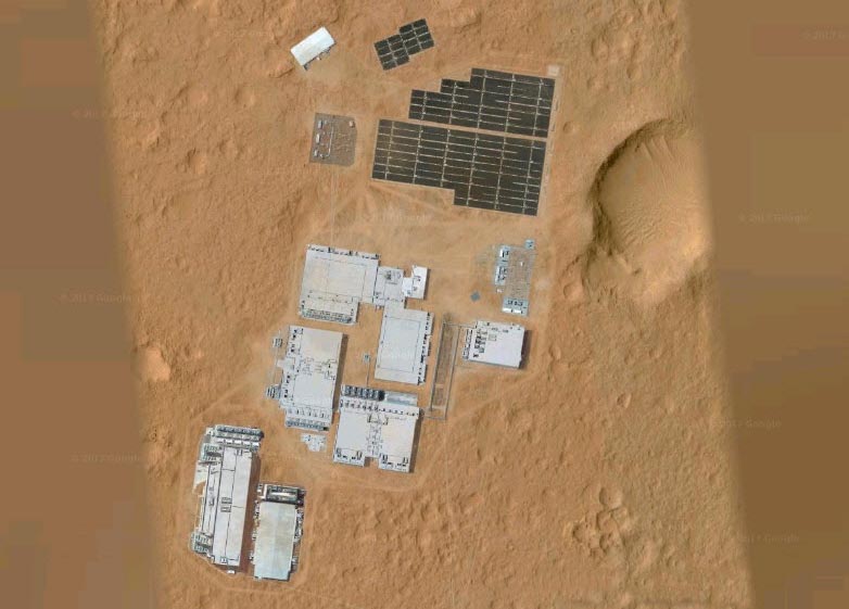 Например кой и кога е инсталирал тази база на Червената планета? В действителност, на фотографиите, представени не само поръчани сгради, но дори слънчеви панели и системи за защита на покривите на тези сгради.